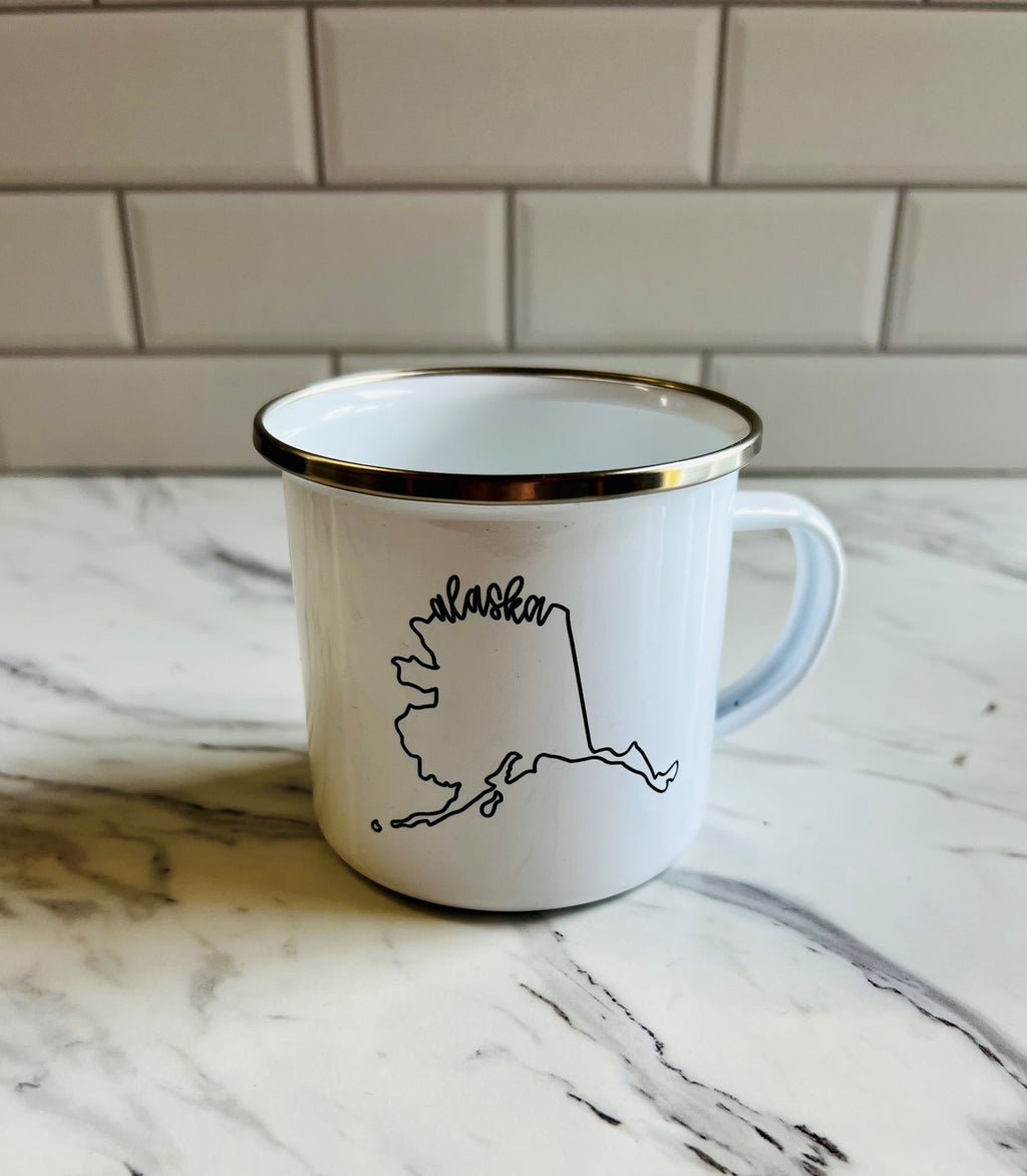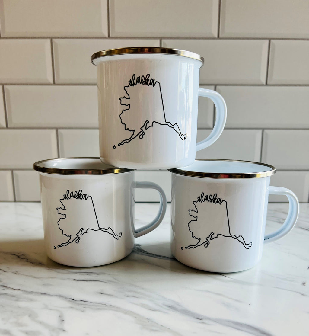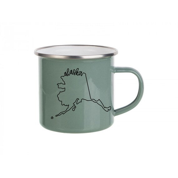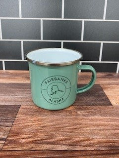 Cozy around the fire with a 12 oz enamel camping mug. Lightweight stainless steel with rounded corners.