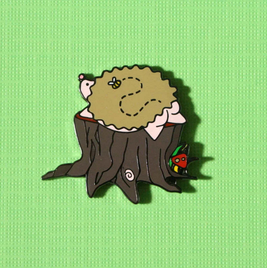 Hard enamel lapel pin in black nickel or silver raised metal with a rubber pin backing.