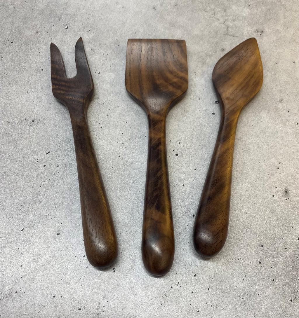 6,5" Walnut or Maple Wood Cheese Utensil 3 piece set